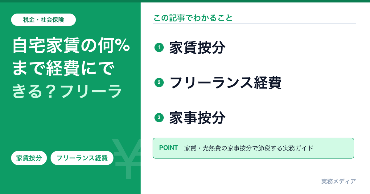 在宅フリーランスが家賃を経費にするための按分割合の目安は20〜40%。税務署が認める「スペース割合」「時間割合」2つの計算方法と、指摘を受けないための根拠の残し方を解説します。