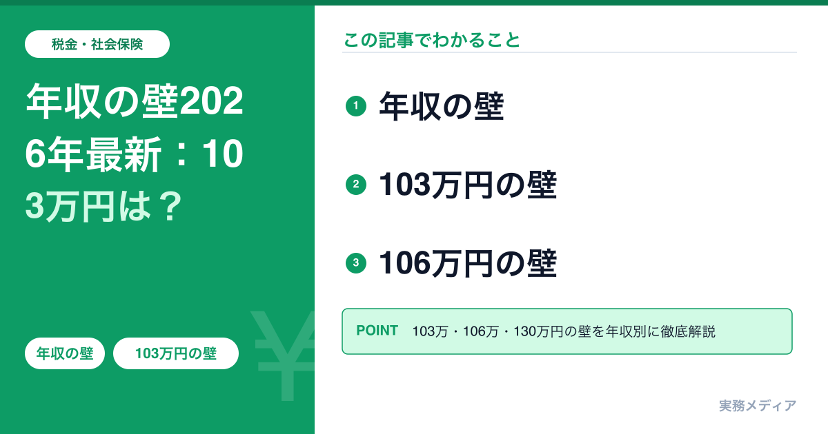 2026年の年収の壁まとめ。103万円の壁は実質123万円に変更。106万円の壁(社会保険適用)は2026年に中小企業へ拡大。130万・150万円の壁と合わせて、パート・扶養の判断ポイントを解説します。