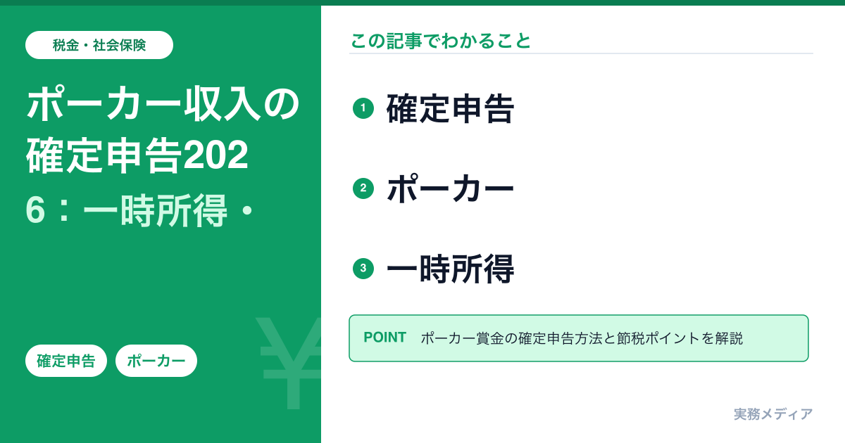 ポーカー大会・トーナメントの賞金は一時所得?雑所得?所得区分の判定基準から課税計算の具体例、申告手順、よくある誤解まで2026年最新情報で解説します。