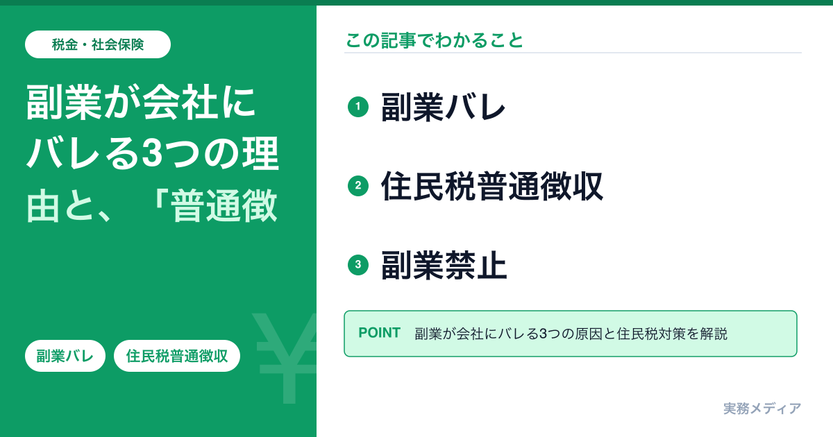 副業が会社にバレる最大の原因は住民税の変化。「普通徴収を選べばバレない」は多くの自治体で通用しません。副業の種類別にバレるルートと現実的な対策を解説します。